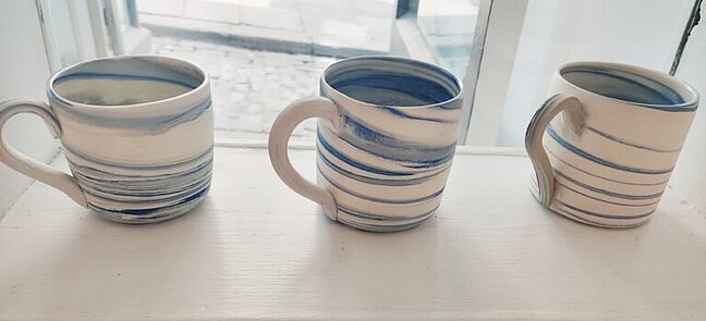 What I love about Parian clay is its self-glazing properties, it feels a bit like glass after firing. It is soft and marble like. These pieces are not glazed. What you see is the bare clay body with the colours running right through the piece.