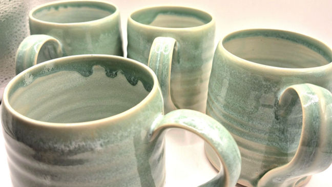 Stoneware thin rimmed mugs